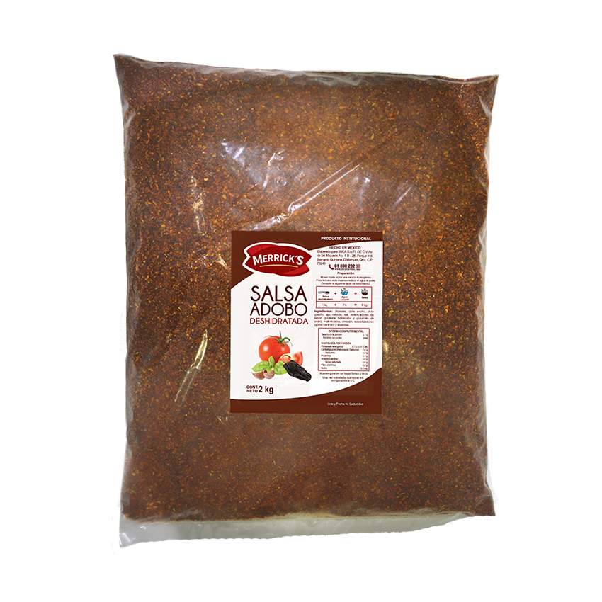 Salsa de adobo deshidratada para guisar. Una bolsa de 2 KG de salsa deshidratada rinde para 16 L de producto terminado. Ahorra tiempo en tus procesos y estandariza costos con las salsas deshidratadas para guisar.